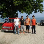 暑いので、車で学校の周りをゆっくりと廻り