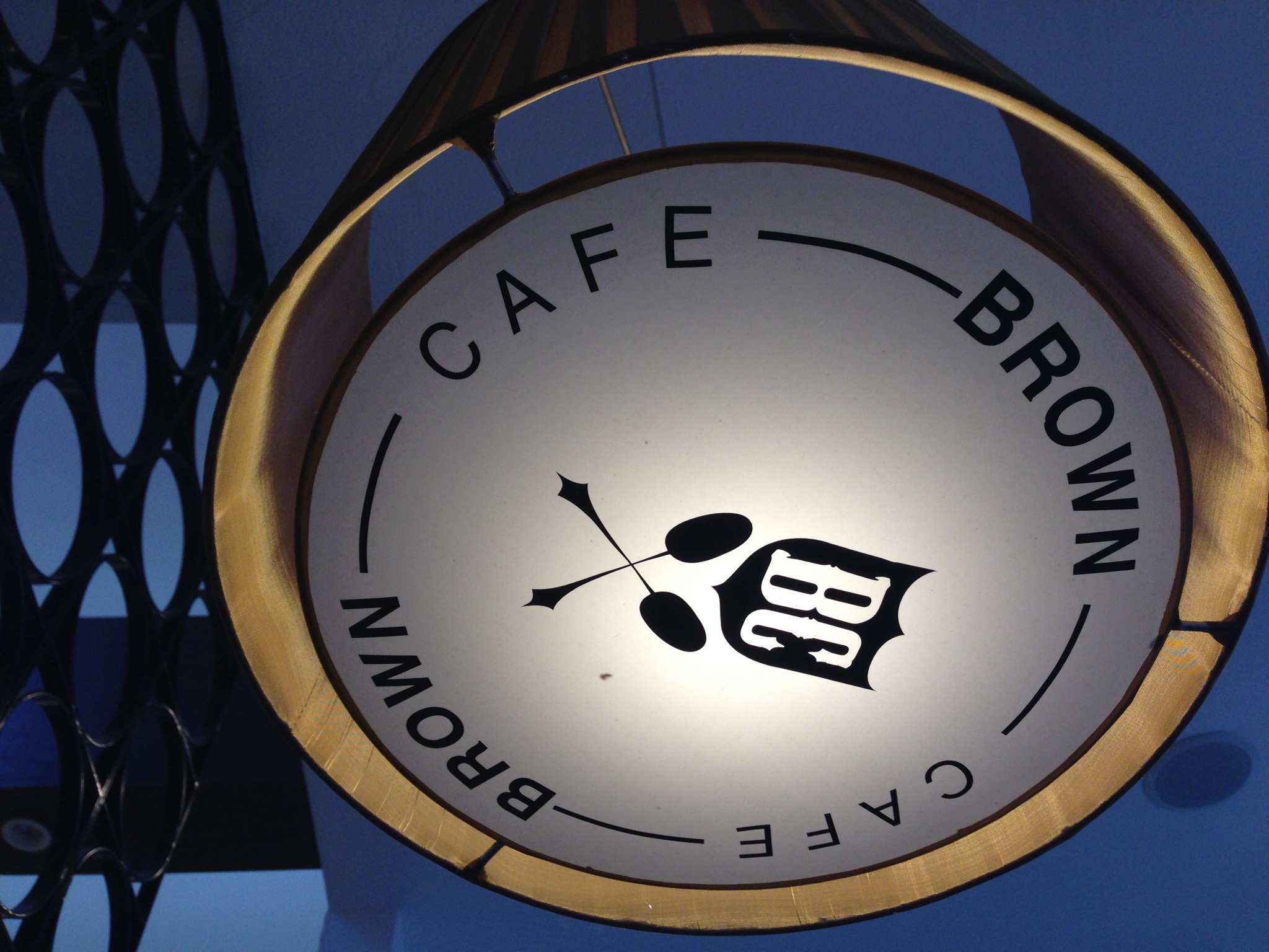 テーブルの上の照明までお店の名前が。